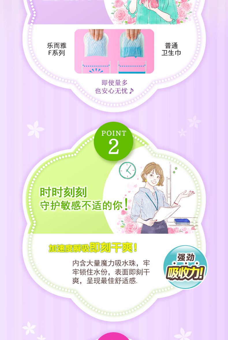 花王乐而雅 F柔软护翼卫生巾 30cm 量多夜用 10片/包